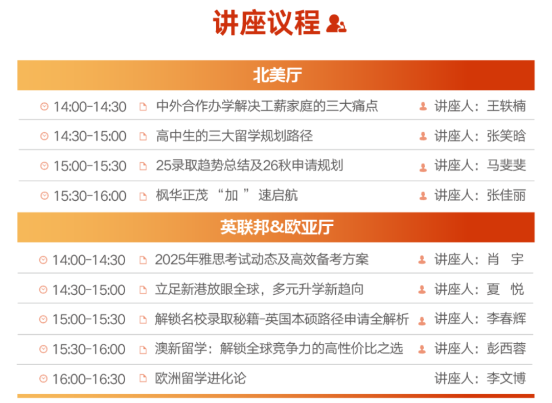 对已规划留学的家庭,现在正是关键时期,该如何梳理申请流程,避开无效准备,让留学之路更顺?对于还在初步了解留学的家庭,如何快速获取留学资讯,明确未来规划,迈向世界梦校?对于临时决定转战留学的高考生,又该如何多线规划,为自己赢得最优升学路径?对于考研成绩不理想的同学,如何快速转轨海外研究生?