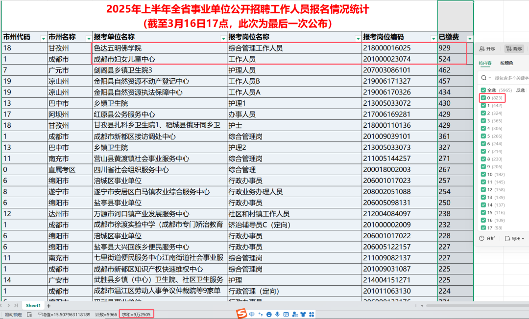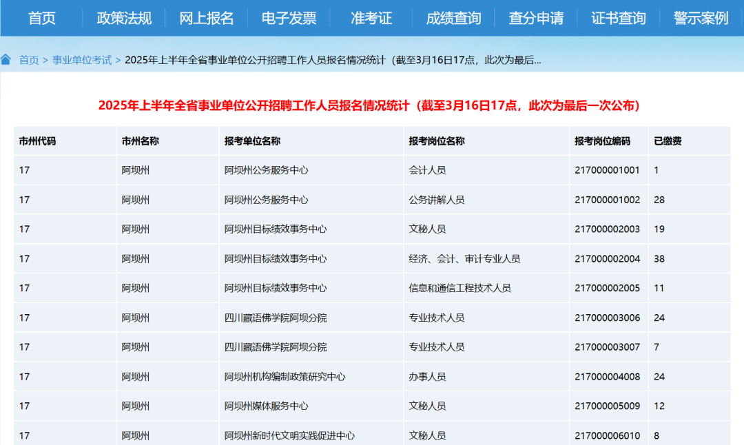 全省事业单位招聘已有92505人缴费(不含教招)