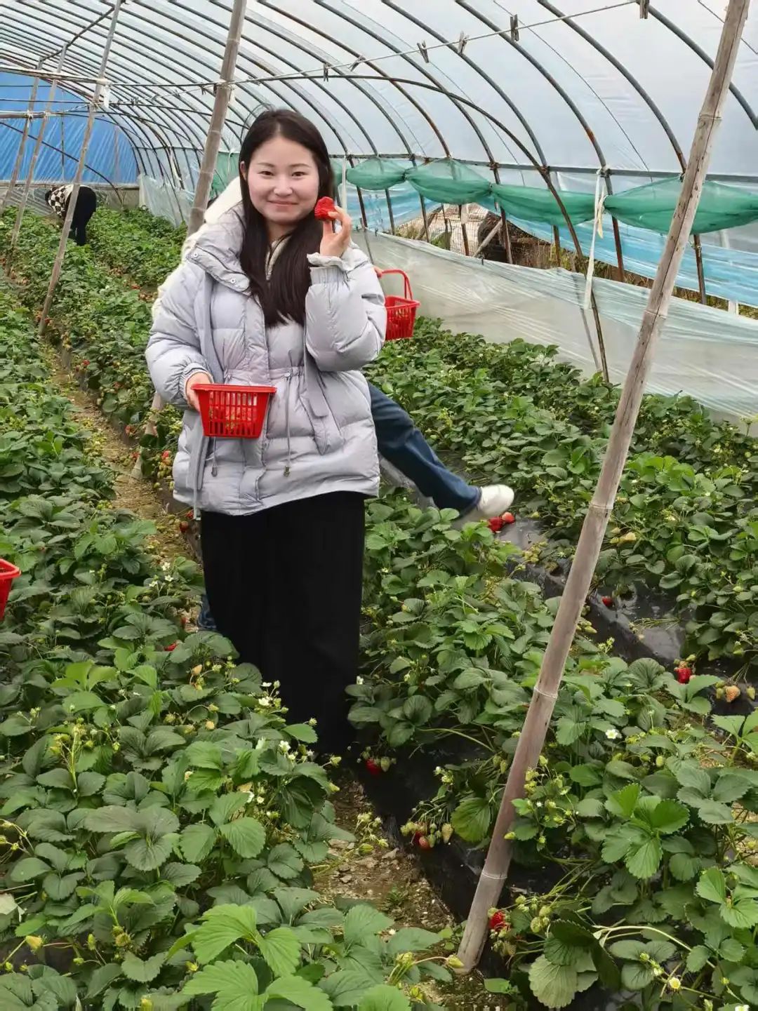 接下来,活动带领大家走进了草莓园,眼前是一片翠绿与嫣红交织的美丽景致。女工们在春意盎然的田间结伴而行,饱满鲜红的草莓在绿叶间若隐若现,平日里的工作压力在这一刻烟消云散。通过采摘,大家不仅亲近了大自然,更在轻松愉悦的氛围中增进了彼此的交流与情谊。