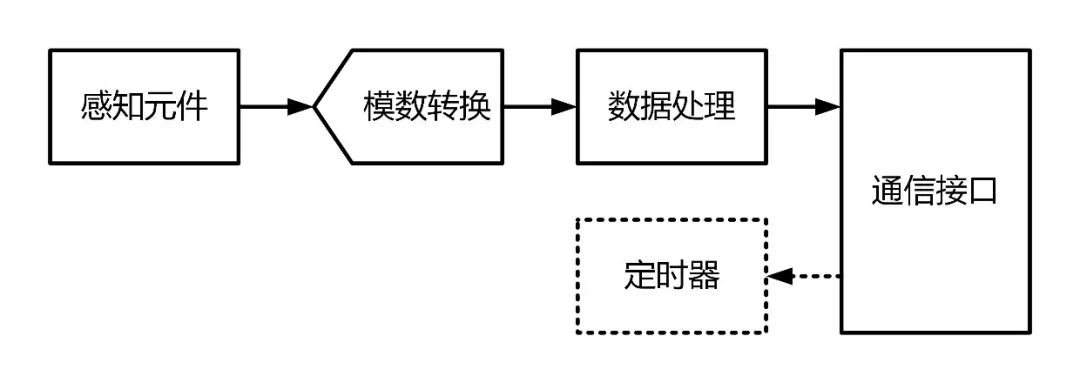 新一代传感器多为数字式传感器,通常由感知元件、模数转换器、数据处理单元、定时器和通信接口等模块组成。其中,只有支持连续转换模式的传感器才会配备定时器模块,用于周期性唤醒其余模块,从而启动一次转换。在不同工作状态下,各模块开启情况不同,静态电流也会随之发生变化。