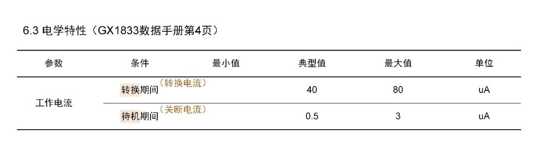 需要注意的是:平均静态电流必须附带测量频率。只有电流值没有测量频率的平均静态电流是没有任何意义的。即GX75C的典型平均静态电流为15uA @12Hz,而非15uA 。