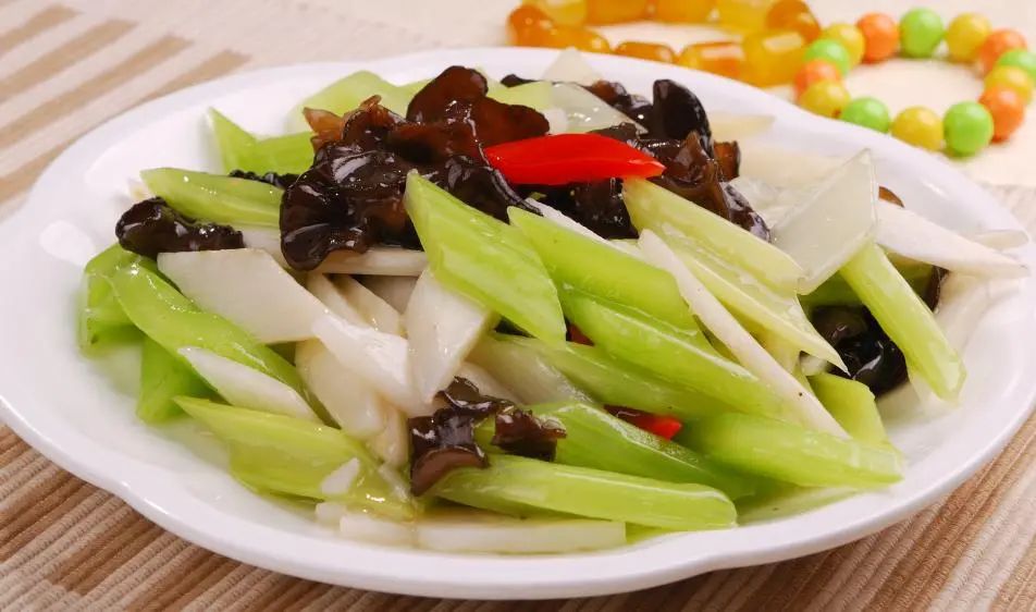 西芹含钾,能排水消肿;山药健脾益胃;木耳可吸附肠道杂质。这道菜清爽低脂、纤维丰富,为身体提供多种维生素和矿物质,是减脂好配菜。