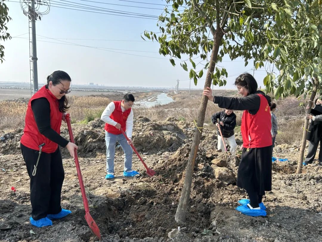 第一站橙色涟漪志愿队来到了由中共温州市龙湾区委组织部(人才办)与共青团温州市龙湾区委联合主办的“筑巢聚才逐青梦·同行共植共青林”活动,活动现场志愿者们默契配合,挥锹铲土、扶苗填坑,让一棵棵树苗在共青林里 “安家落户”,为大地增添了一抹新绿。