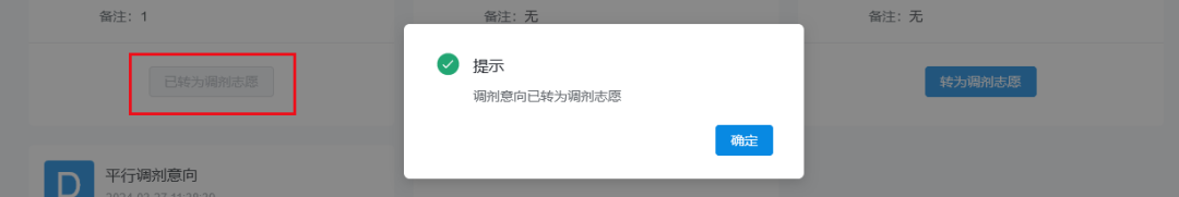 转为调剂志愿后,页面下方会显示“已转为调剂志愿”,招生单位可以在调剂服务系统后台查询到相应的志愿信息。