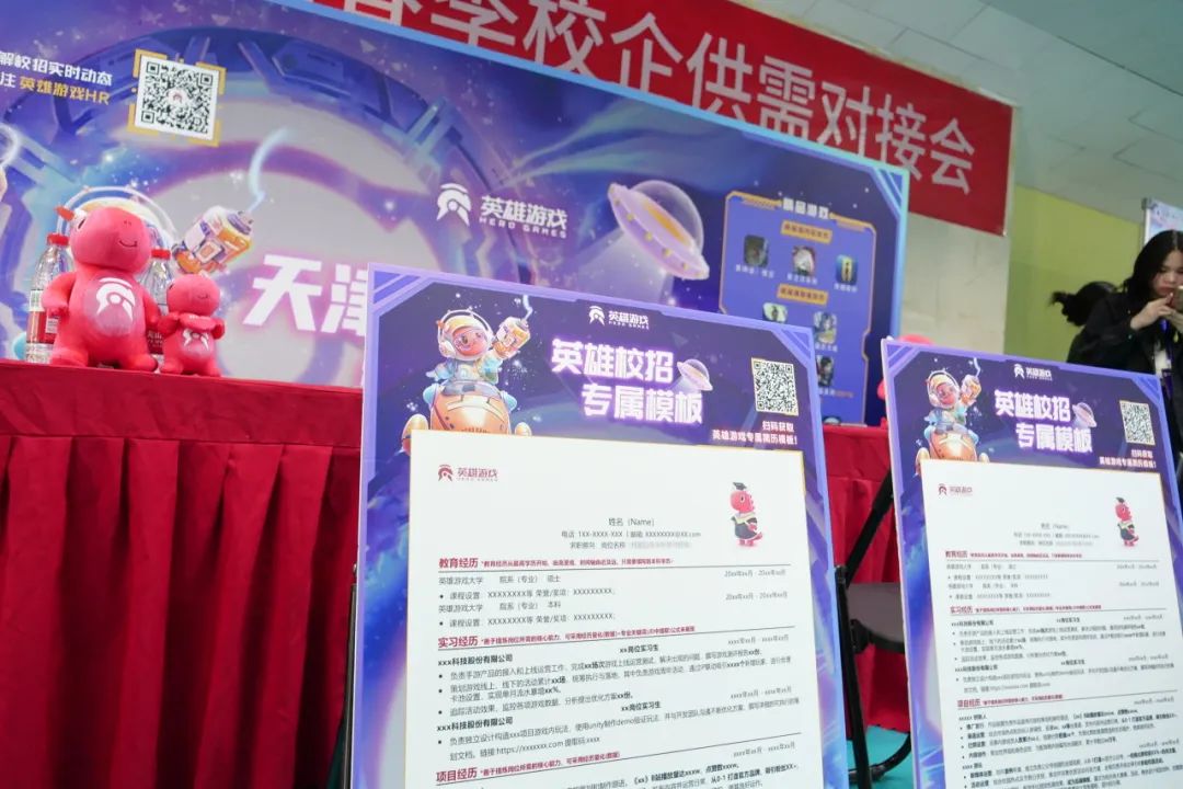 在现场,英雄游戏还展示了定制简历模板,涵盖游戏行业重点关注的模块和信息,助力同学们高效就业。