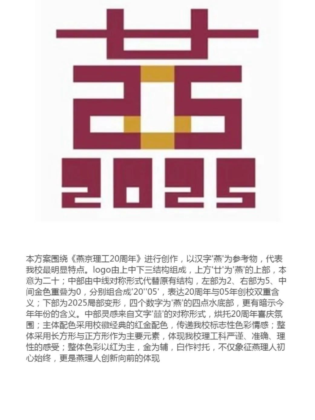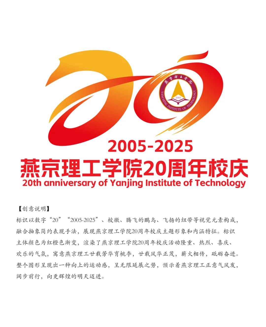 释义:廿载风华以典雅笔法凝练二十年历程,暗含"燕理速度"与"风华正茂"的双重意象。体现教育事业的文明传承,又隐喻理工学科"星火燎原"的科研创新精神以"智"字统领,既彰显人工智能时代特色,又暗合校训中"智慧育人"理念,为党育人、为国育才。