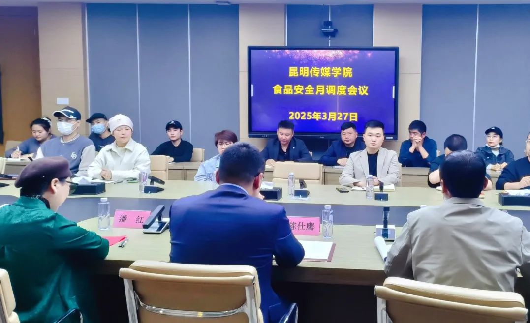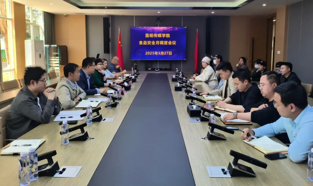 3月27日,昆明传媒学院举行食品安全月调度会议暨校长现场办公会。校长潘红、校长助理陈仕鹰,后勤处负责人、食堂商户代表以及餐饮与商业中心全体成员出席会议。会议聚焦校园食品安全工作,围绕近期工作进展、风险排查情况及未来提升方向展开深入研讨,旨在进一步强化责任落实,为全校师生营造安全、健康的就餐环境。