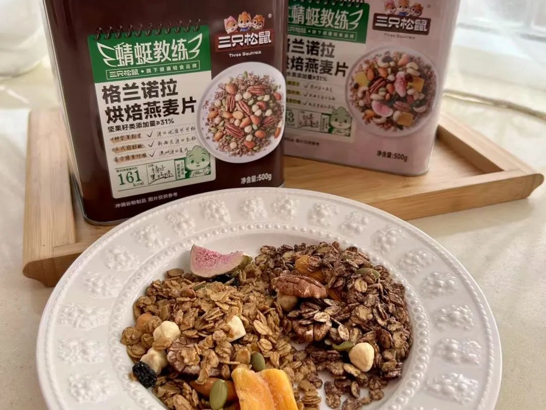 蜻蜓教练的格兰诺拉烘焙燕麦片还特别添加坚果与果干,一次补充优质脂肪和优质碳水!
