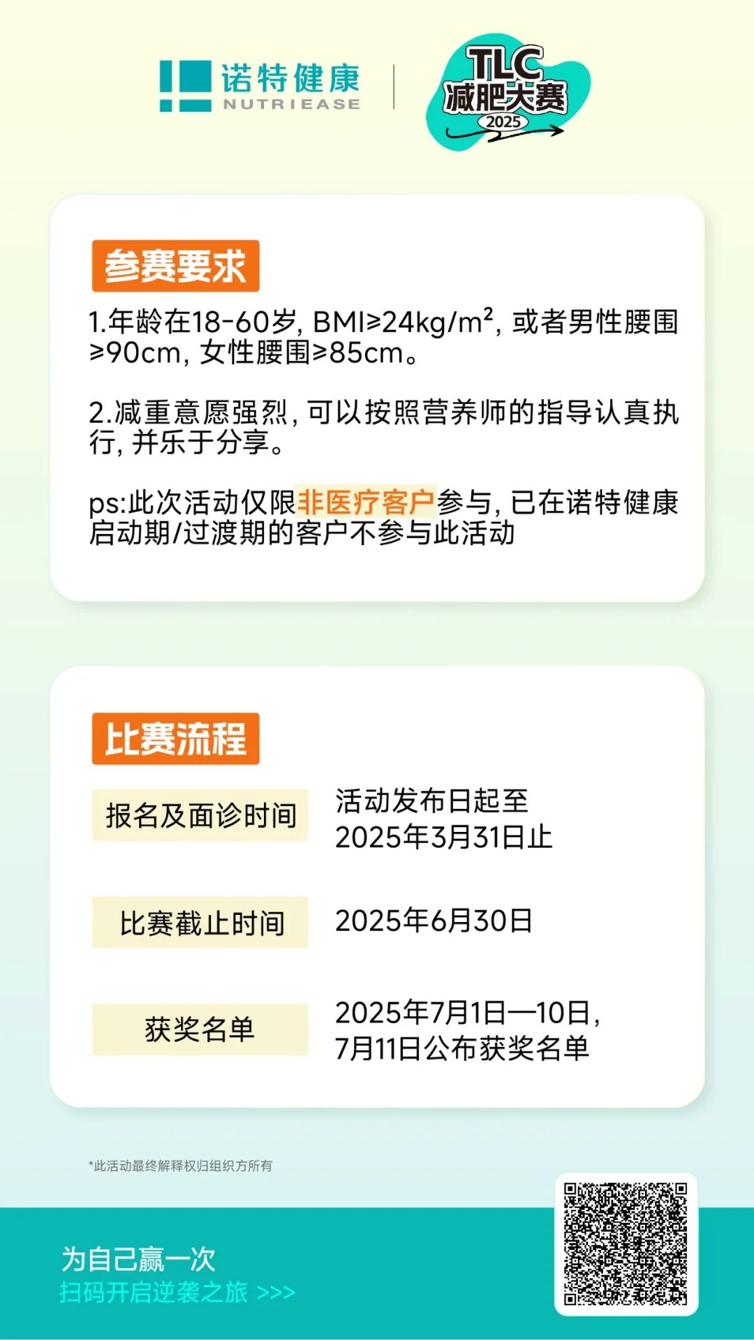 别纠结,别犹豫,无论你是想要赢取奖金、奖品,还是想要获得一份健康、自信的自己,这场减肥大赛都是你不可错过的机会!