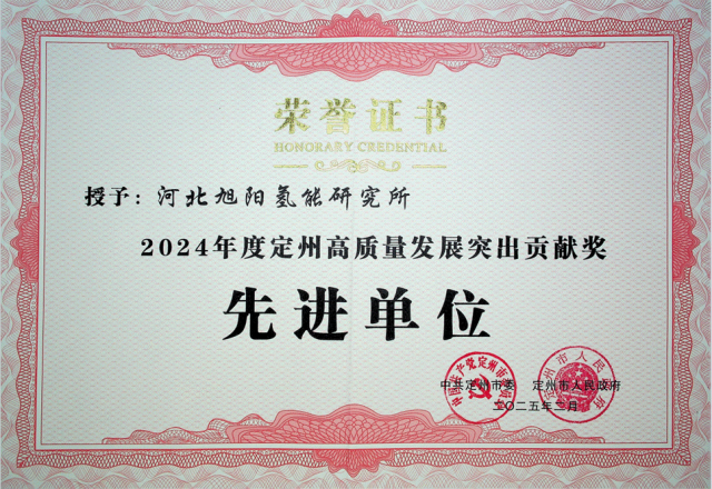2025年2月,旭阳氢能研究所被定州市委市政府授予2024年度定州高质量发展突出贡献奖先进单位称号,并于近日获颁荣誉证书。