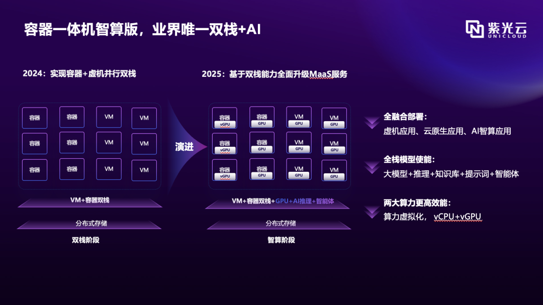 2024年紫光云重磅发布紫鸾应用容器一体机,以“容器+虚拟机”双栈架构解决业务云原生转型“最后一公里”问题。与时俱进,2025年紫鸾应用容器智算版以其独特双栈+AI能力,为客户提供简单、高效、可靠、灵活扩展的云数据中心解决方案。