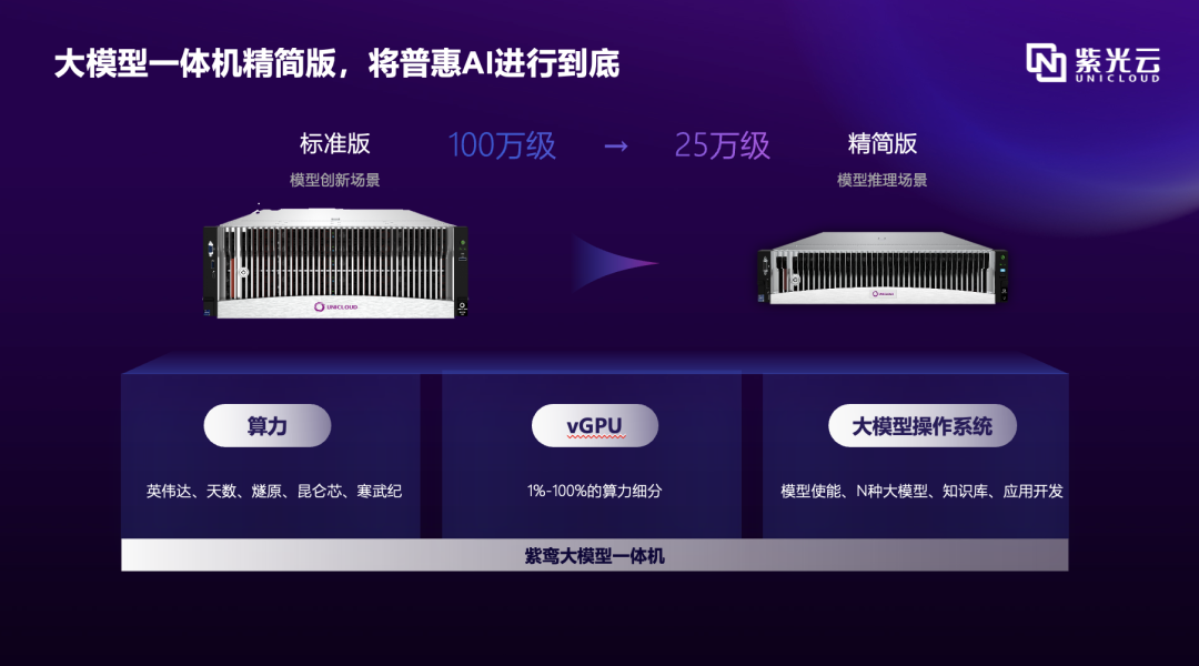 在生成式AI技术迅猛发展的浪潮中,大模型已经成为企业智能化转型的关键所在。在这一背景下,紫光云推出了大模型一体机标准版、精简版,致力于让每个组织都拥有专属的智能生产力,将AI普惠进行到底。