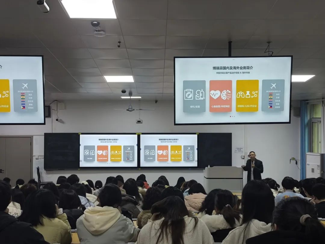 近日,博瑞霖集团在湖北医药学院药学院成功举办2026届毕业生专场宣讲会,活动受到药学院党委书记郝新才的高度认可和支持,吸引了药学、中药学、制药工程专业160余名同学参与。学生辅导员徐璠婧主持会议,校友代表、博瑞霖集团销售经理陈龙为同学们深度解读行业前景与企业人才培养机制。