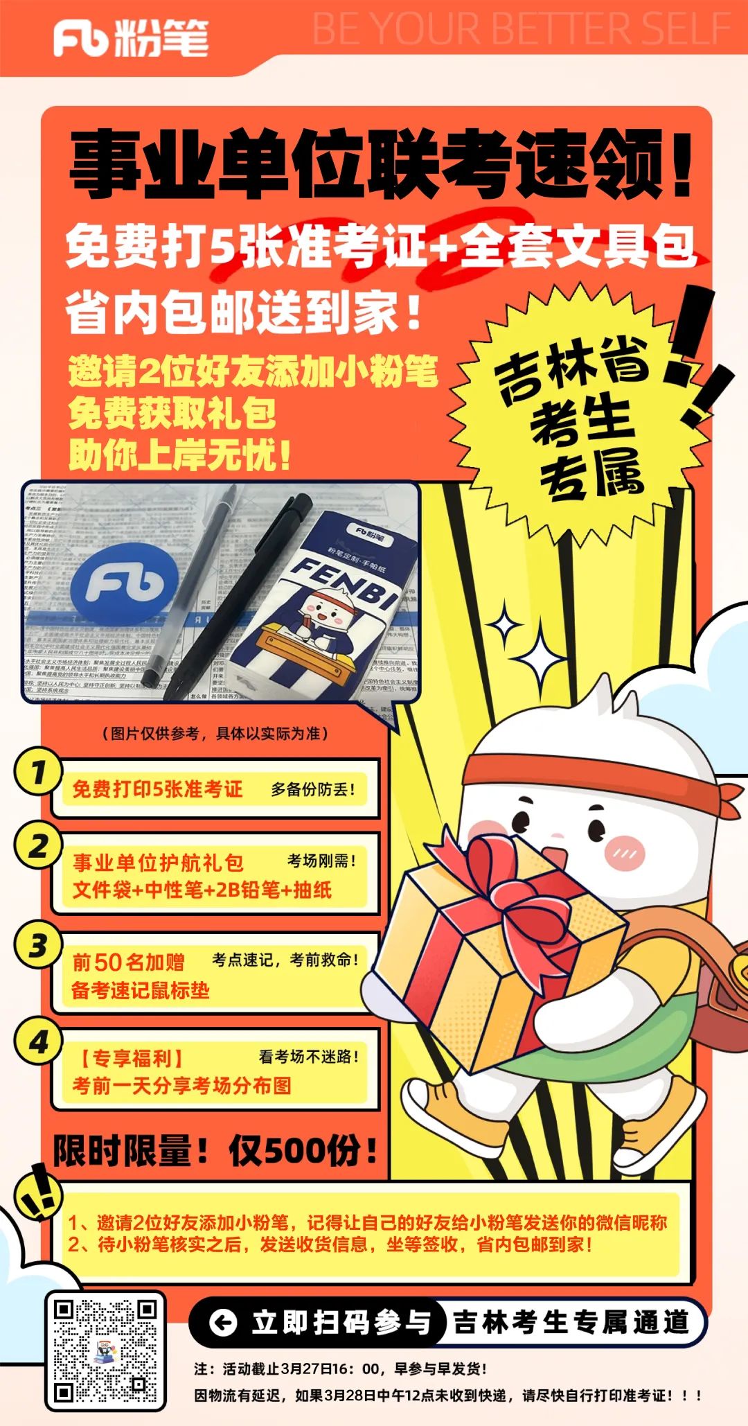 免费打5张准考证+全套文具包