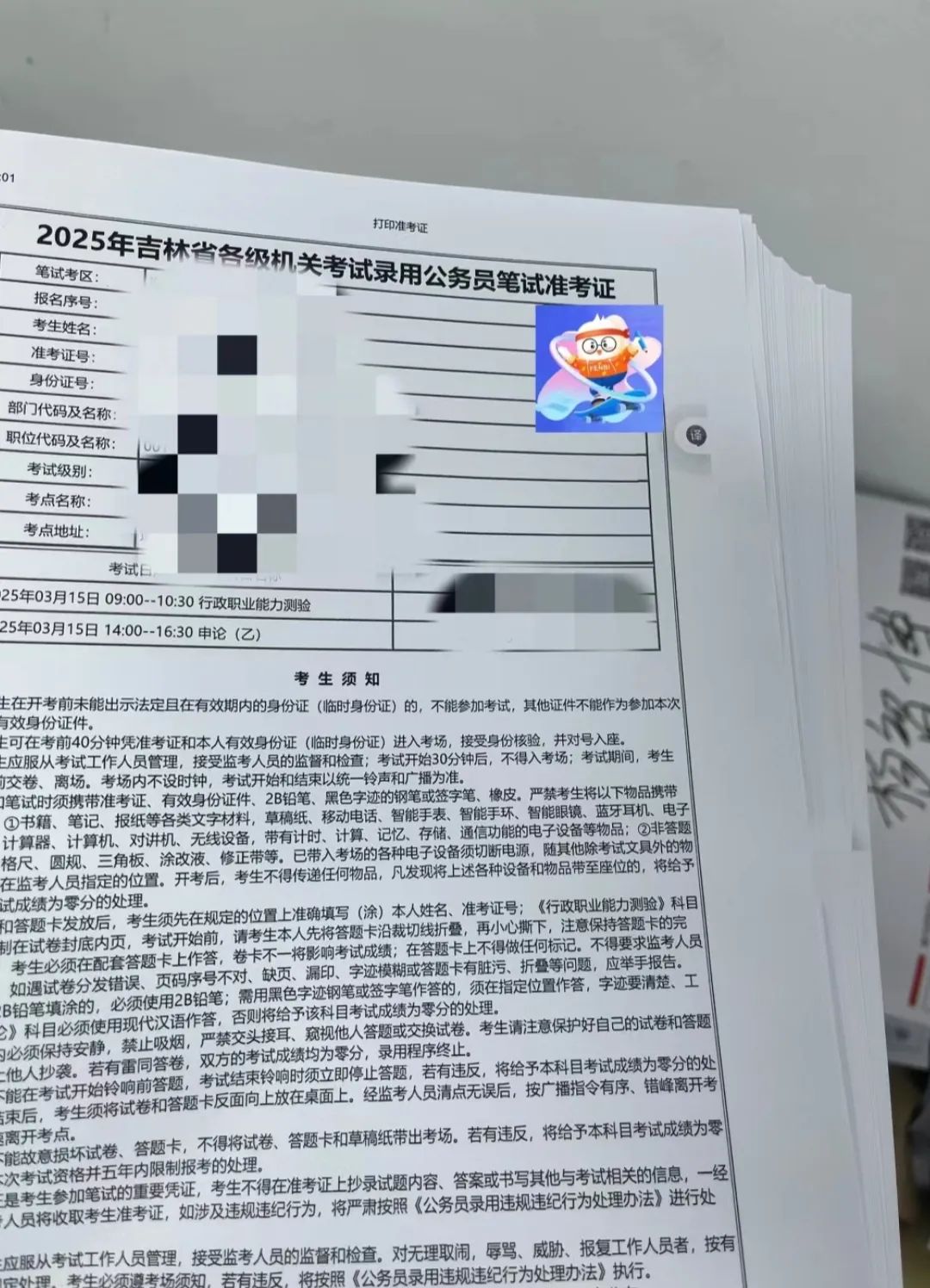 小粉笔也帮很多同学打印了准考证