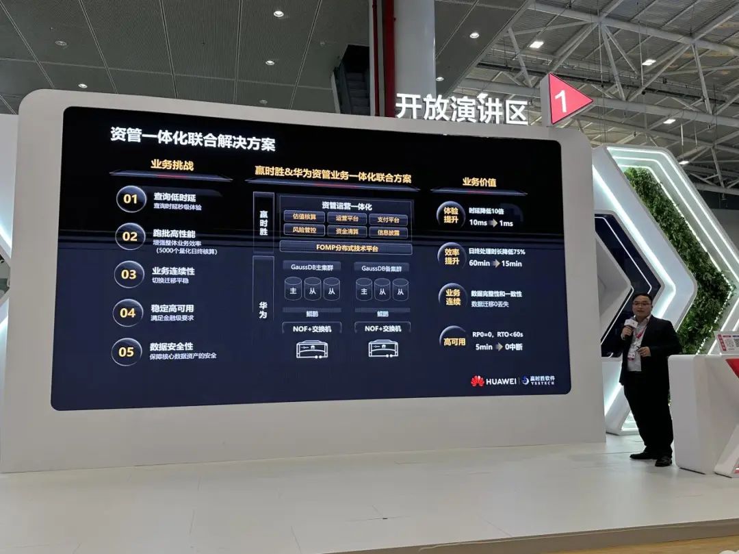 在开放演讲区,赢时胜资管产品解决方案总监发表了题为《赢时胜&华为-资管一体化联合解决方案》的精彩演讲。目前,双方正携手推进公募基金、保险资管、券商私募外包等机构业务的深度应用测试,并计划在未来进一步深化在人工智能领域的研发合作以及针对不同行业的解决方案定制。