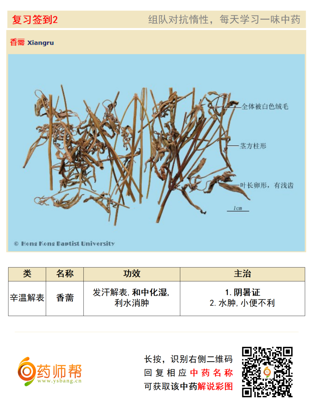 | 香薷 | 射干 | 海风藤 | 肉桂 |