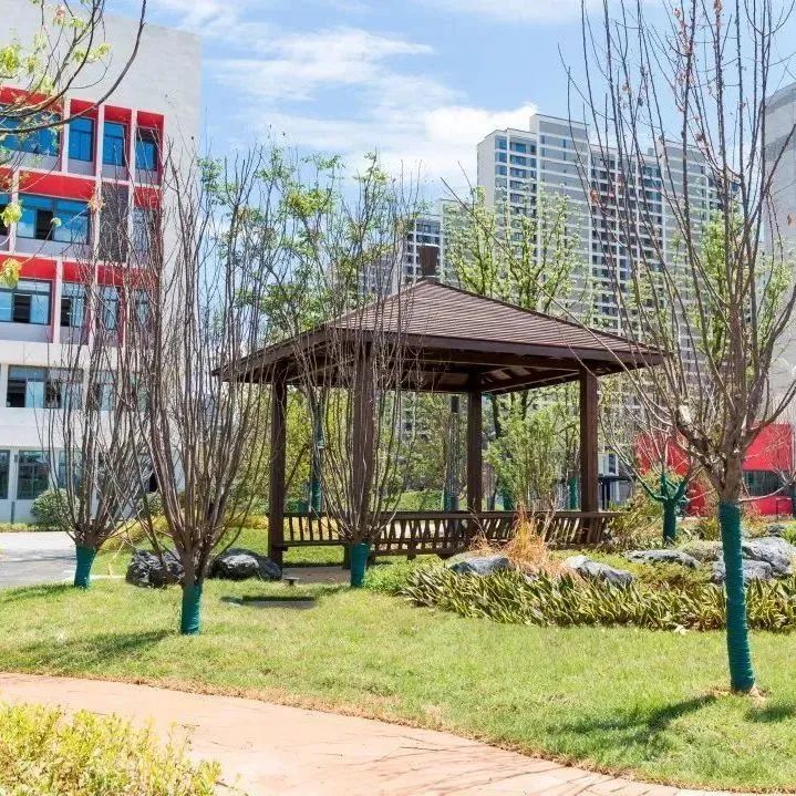 学校整体色彩明亮,外墙以白红为主色调,室内装饰则以蓝色为主。“一师红”“生命绿”“温润蓝”的主体色彩将学校办学理念巧妙的融合在内。