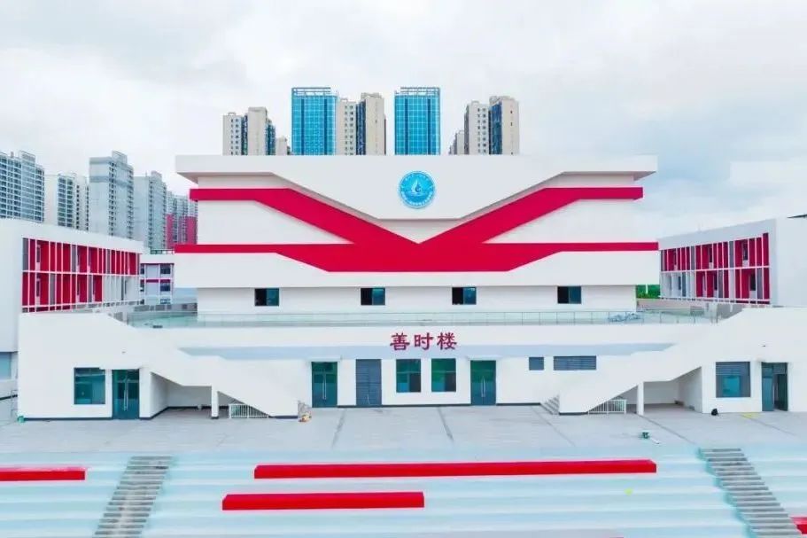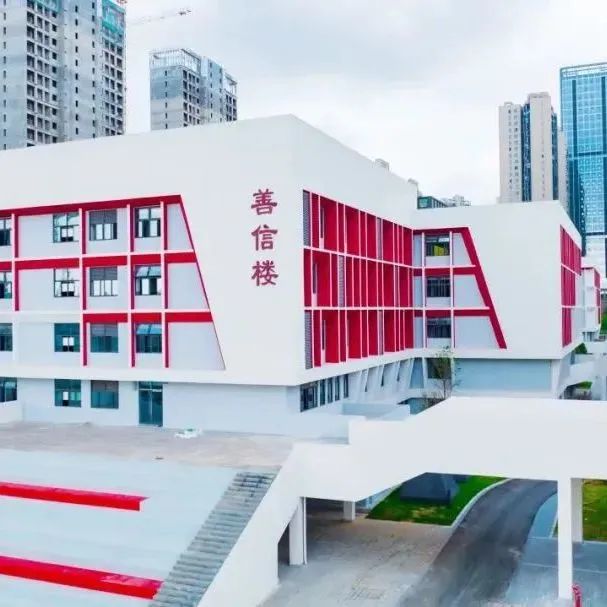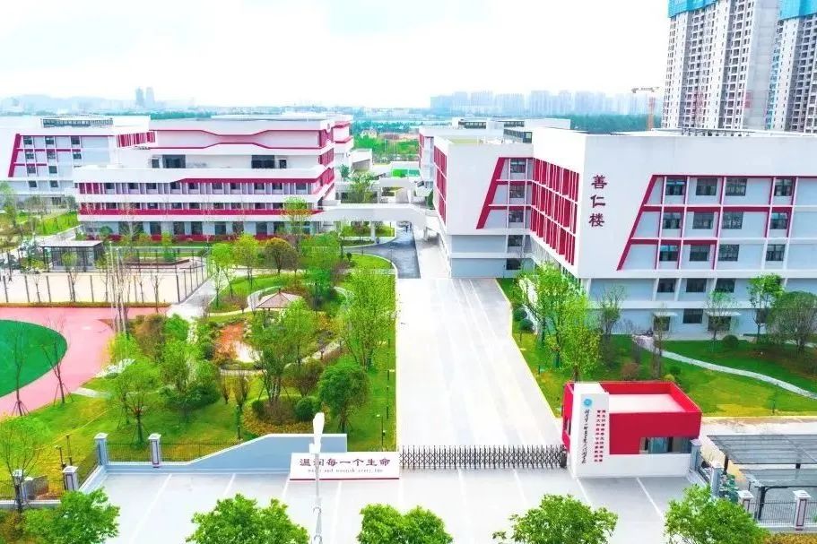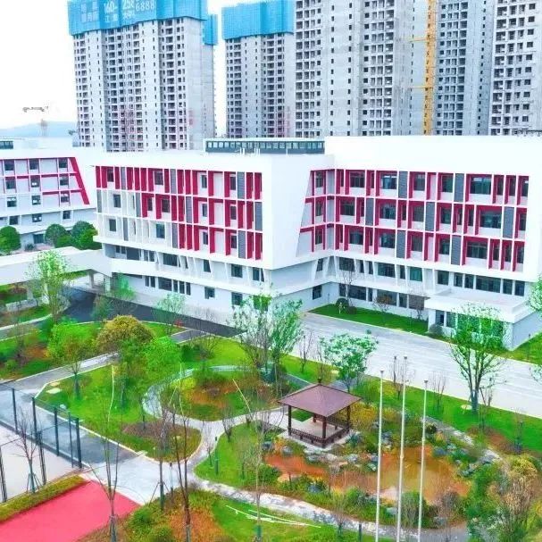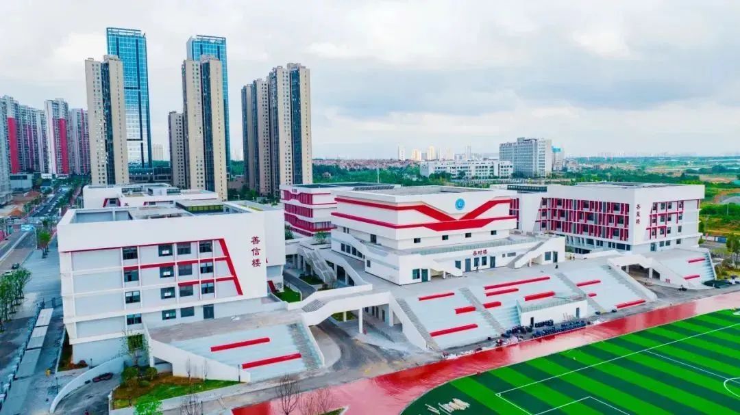 学校外立面主色调为湖湘红和白色,采用飞鸟的形象为主题设计,传递“鹰击长空,鱼翔浅底;一飞冲天、一鸣惊人”积极向上的精神面貌。