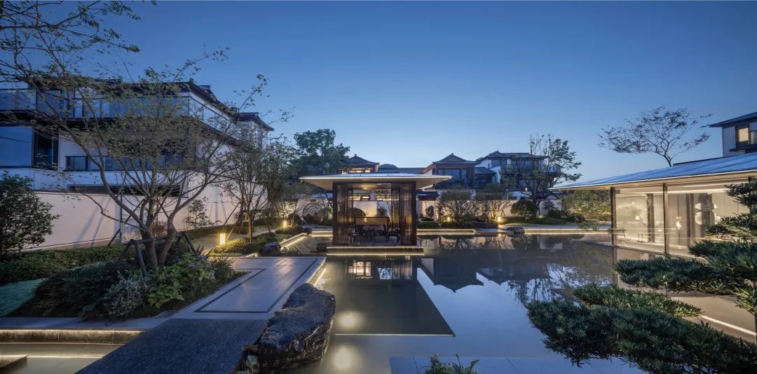 步入宁波宜和东方合院,仿若进入江南婉约诗篇。项目深入解读宋代刘松年《西园雅集图》,汲取传统古典园林多进式院落空间的精髓。通过对山水走势、水埠形态、路桥形态等东钱湖自然人文现状抽象解构,并结合“钱湖十景”元素意向,以拟态化表达手法和现代设计笔触,营造出富有江南生活情节的社区景观。