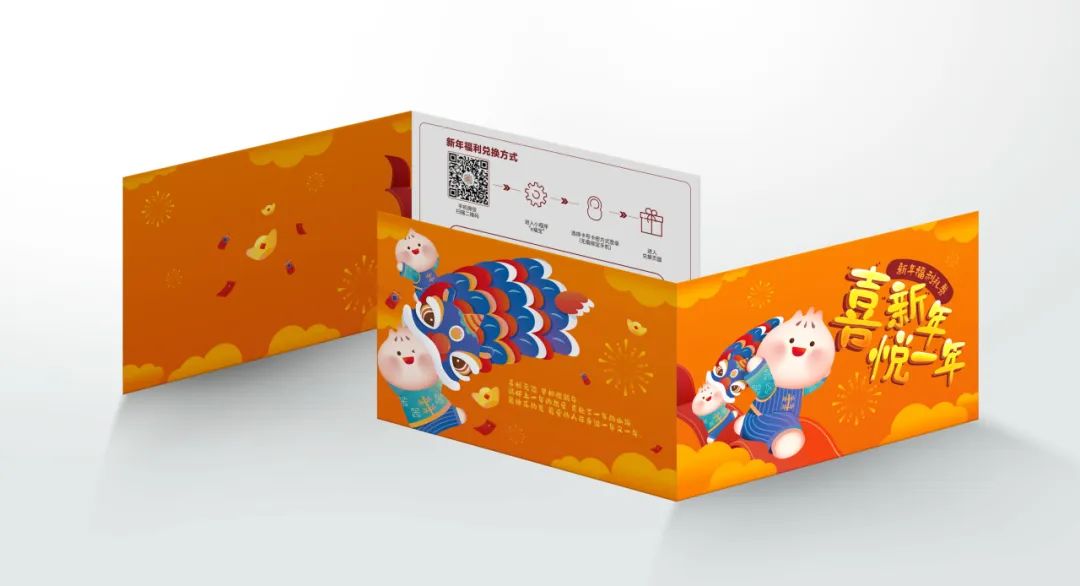还有配套新年福利卡券,赠予员工,