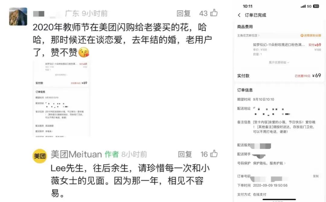 这位来自广东的Lee先生,在5年前用美团闪购给小薇女士送了一束花,当年收花的女孩,如今已经成为枕边人,美团闪购也目睹了这段关系的生根发芽。