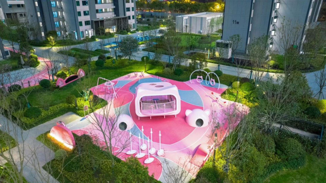 除提供运动场地外,融创园林还充分考虑老人和儿童的需求。南京龙池映建有科普教育式的阿狸主题粉色梦幻城堡,游乐场地采用儿童塑胶安全胶水打造,还配备户外无接触式洗手台与感应式洗手液,守护孩子安全与健康,让他们尽情玩耍;苏州悦云庭半开放式的会客厅方便老人品茗对弈,同时设置了野孩子树屋、活力运动环等多功能场景,极大满足儿童户外玩耍的日常生活所需。