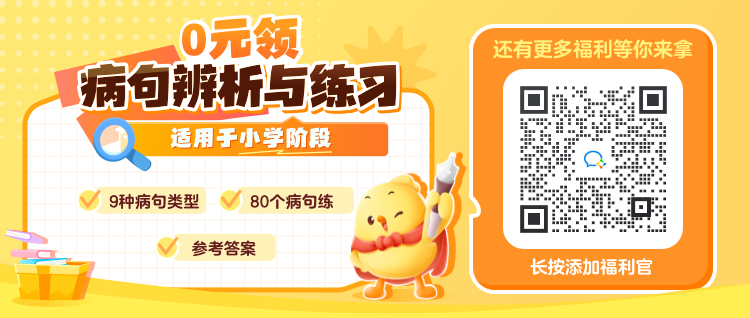 下面免费送您一份《语文病句辨析与练习(小学阶段)》资料包,助力新学期!记得扫描下图二维码领取哦!