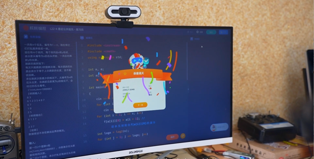 随着课程的深入,昕壑接触到编程的核心逻辑,他不断地调试、修改,遇到问题时从不轻易放弃,而是凭借着内心那股“犟”劲,反复思索,寻找解决方案。心中只有一个信念,那就是一定要取得CSP-S认证,作为编程实力的证明!