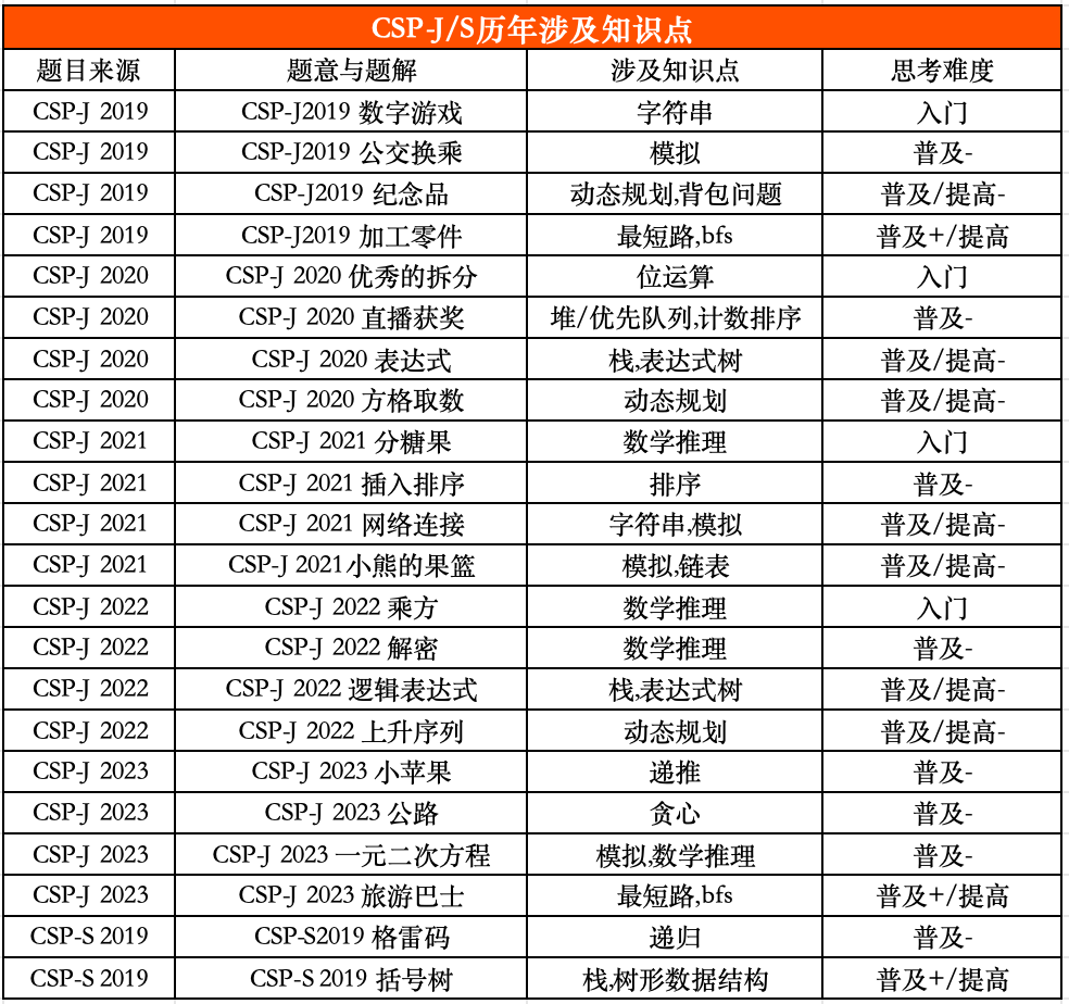 *CSP-J/S考察的知识点与难度分析