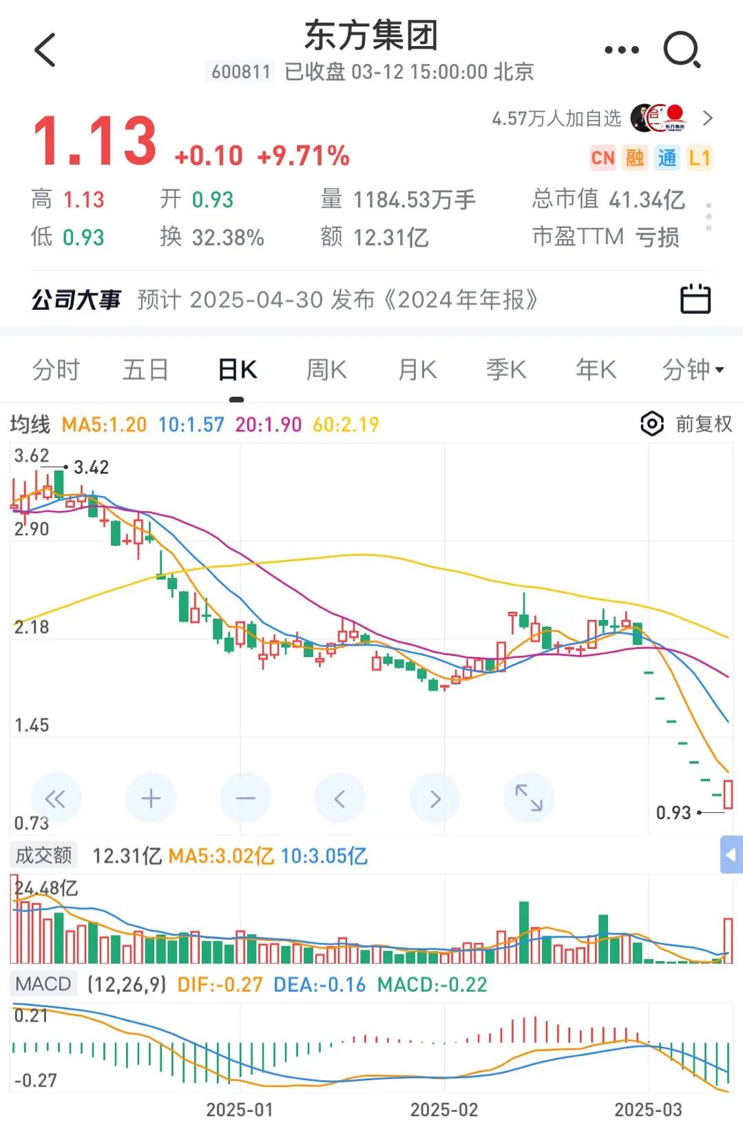 面临将要退市的风险,经历了7天的跌停,今日却上演“地天板”,东方集团今日迎来强势反弹。