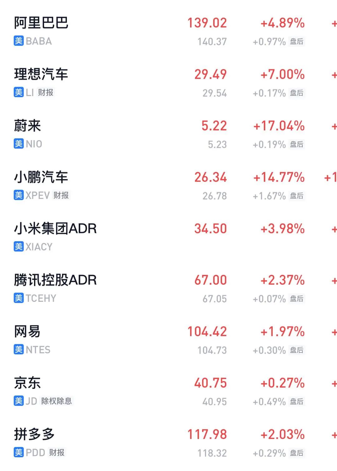 昨日晚间,在美股市场,中概股再度表现惊艳,纳斯达克金龙中国指数涨2.83%。蔚来涨17.04%,小鹏汽车涨14.77%,理想汽车涨7%,阿里巴巴涨4.89%。