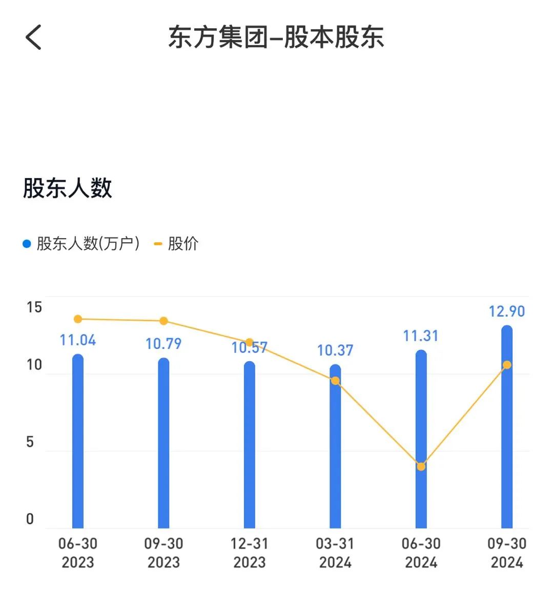从公布的数据来看,截至2024年9月30日,东方集团公布的股东人数达12.9万户。