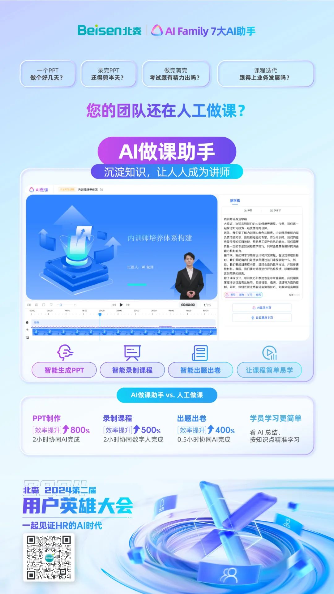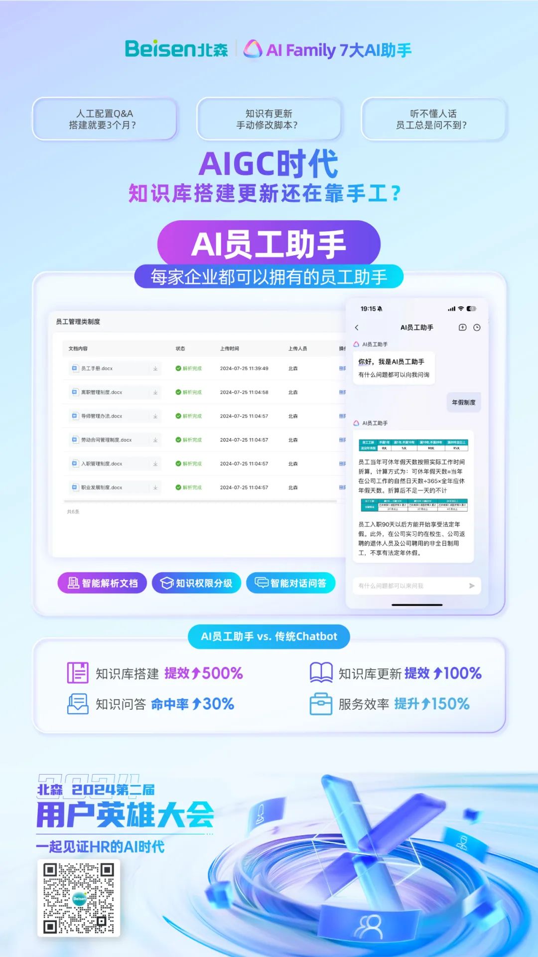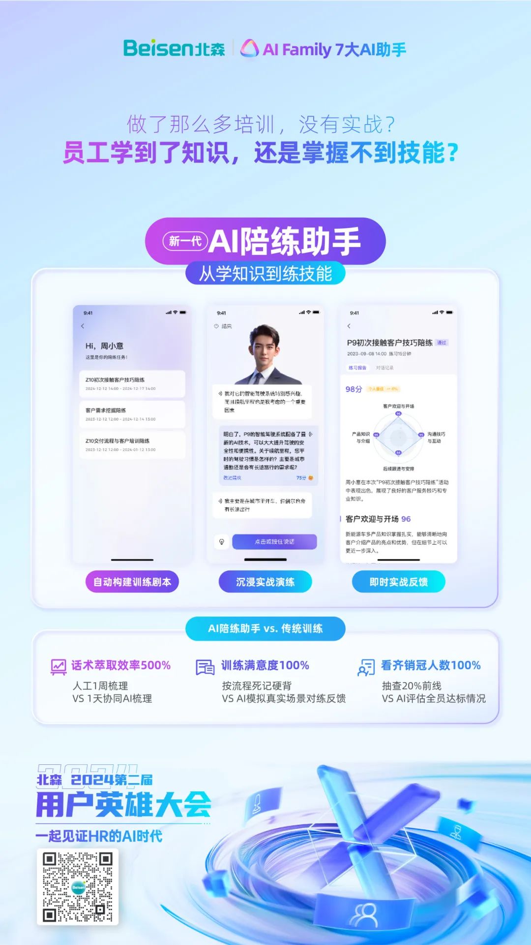 8月15日,北森“2024第二届用户英雄大会”在京举办。大会聚焦“一起见证HR的AI时代”,以一大主论坛+七大分论坛的形式,设置了一体化HRSaaS、AI招聘运营、AI重塑学习、人才管理&干部数字化、低代码平台与AI技术、全面绩效管理和HR数字化私董会等不同议程,并邀请了30余位在国内、外有影响力的组织与人力资源数字化专家、HR数字化实践者、AI技术大牛等嘉宾亲临现场分享前沿洞察与实践案例。期间,北森重磅发布iTalentX 8.0,通过AI大模型的HR七大AI助手+全球一体化HR SaaS解决方案,全面赋能企业通往HR数字化新时代。