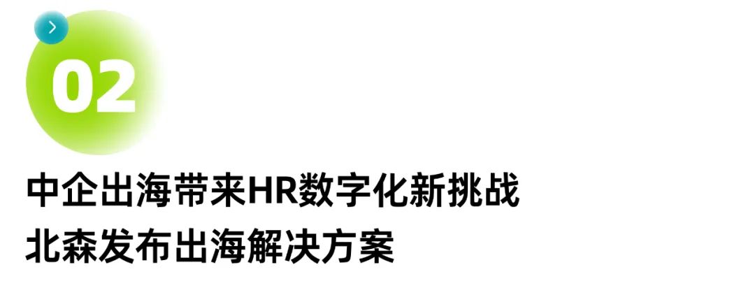 除了AI大模型,北森认为HR数字化的另一大趋势是中企出海。过去一年,越来越多的中国企业加速全球化发展布局,中企出海成为探索新增长点的主要途径,受地理版图扩张带来的异地文化、法律法规等因素影响,人力资源部门正面临全新挑战:如何实现出海合规,数据隐私合规,制度合规?如何结合属地差异化,实现海外人才招募、考勤发薪、任用发展等一体化管理?又要如何站在全球化视角进行人力资源统筹?基于此,北森打造全球一体化HR SaaS解决方案,针对中企出海的客户需求,从多语言、多时区、多币种、数据合规角度切入,打造人力数字化一张网,全面拥抱AI,护航中企出海。
