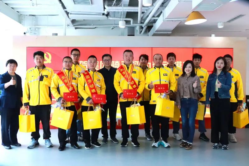 ▲美团党委为全国劳模骑手、省级劳模骑手发放慰问金、慰问品