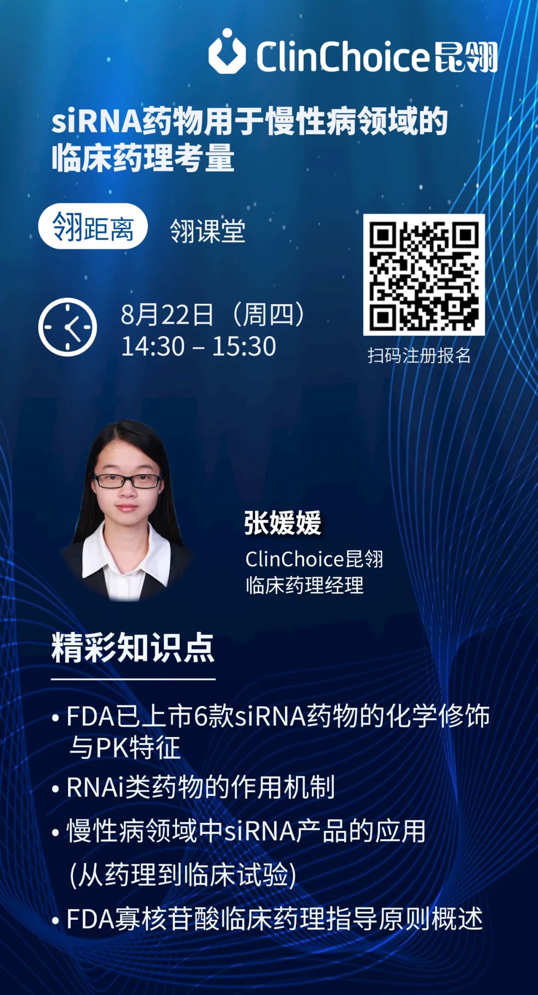 8月22日“翎课堂”网络研讨会,我们将邀您一起聚焦和剖析这些关键因素,揭示siRNA在慢性病治疗中的潜力和应用前景,领略这一革命性技术的魅力。