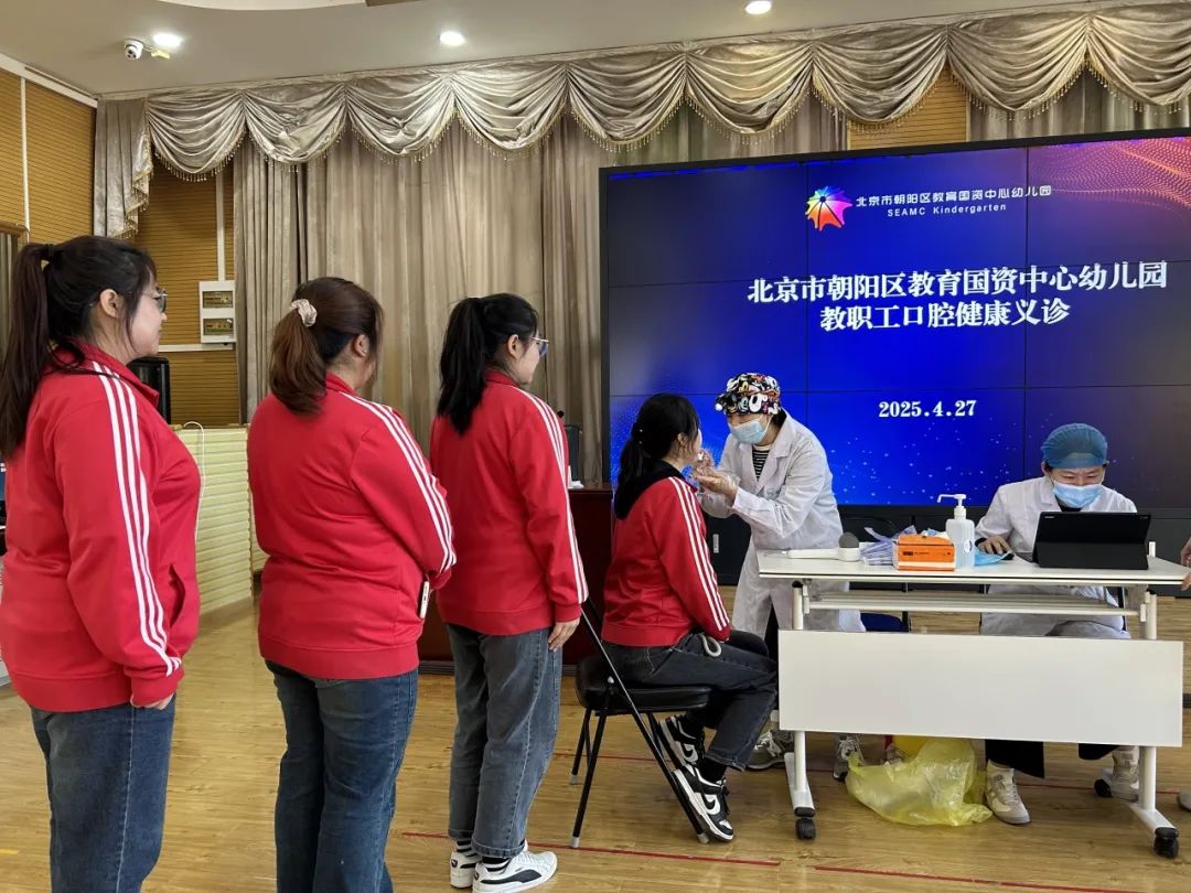 在活动的最后环节,北京市牙防所合作单位维恩口腔医院的口腔全科医生为华翰北(C)园的教职工提供了现场义诊服务。使教师们在繁忙的工作之余也能够关注自身的口腔健康,从自身做起,维护好口腔卫生,从而更好地带动幼儿和家长共同关注口腔健康。