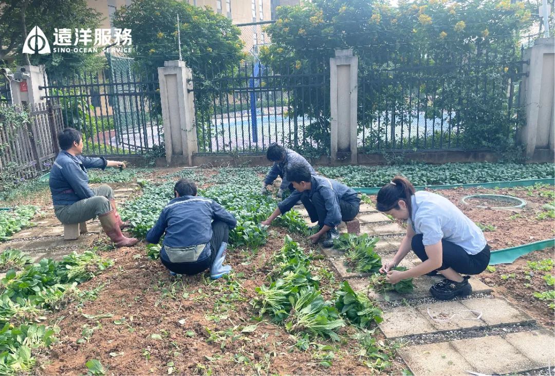 为了让这片新生的菜园真正“活”起来,物业团队各条线联动,分工配合。前期由绿化团队进行播种及浇水呵护;到蔬菜成熟时,由客服和安管团队进行采摘和打包、派发;采摘完成后,由保洁团队进行翻土和施肥,为下一轮播种做好准备。整个过程环环相扣,像一场无声的接力赛,齐心协力呵护这片绿意。