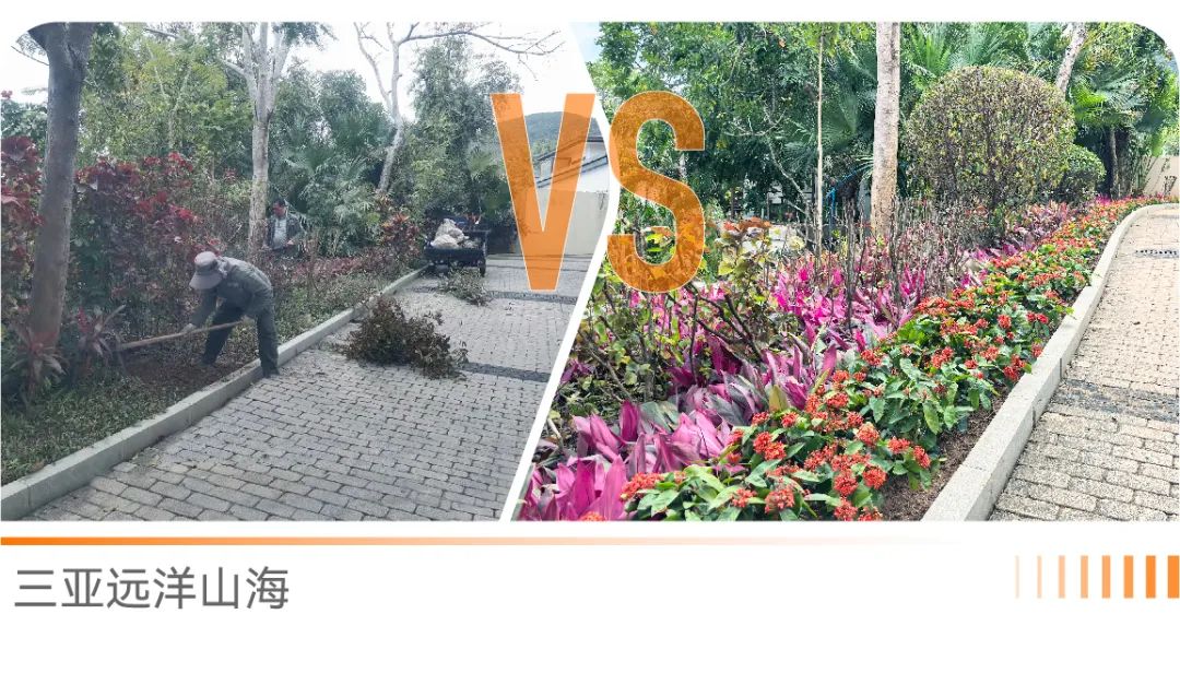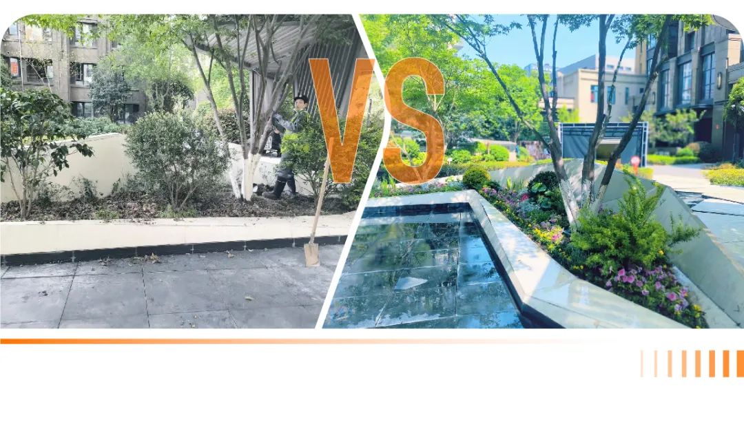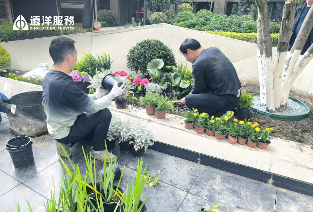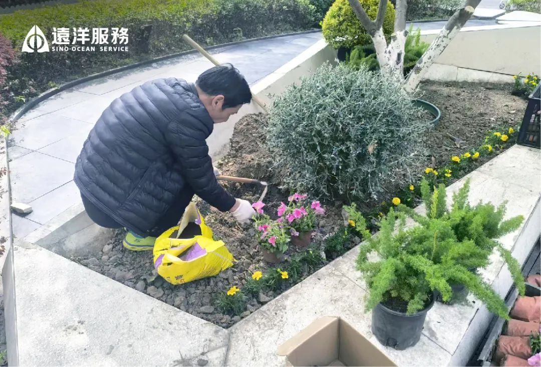 绿化需要常换常新,小区裸土、植物活力不足的区域,远洋服务进行植物焕新,恢复景观活力。