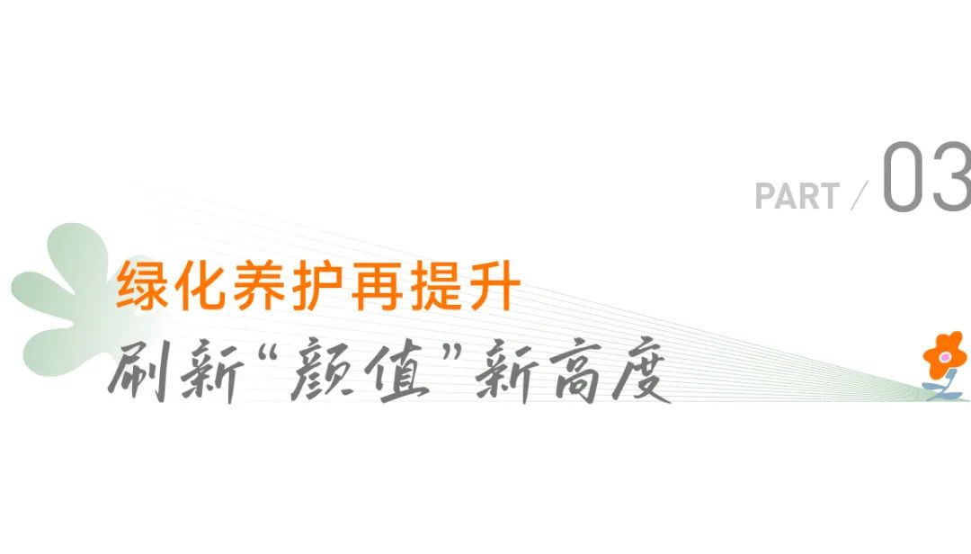 无论是归家时的迎宾花径,还是开窗时的满目芬芳,这片“花镜”都以五彩缤纷的姿态,迎接每一位业主的归来。