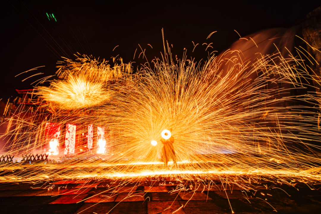 《梦回西楼》大型国风实景铁花秀现场图