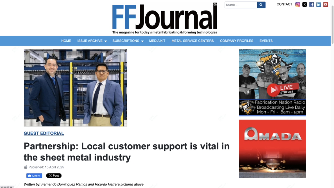 《FFJournal》是北美地区金属成形与制造行业最具影响力的专业杂志之一,其报道内容覆盖前沿技术、行业趋势及企业最佳实践,读者包括工厂管理者、工程师、采购决策者等产业链关键角色。多年来,《FFJournal》始终致力于推动制造业升级与国际交流,是行业人士获取权威信息的重要平台。