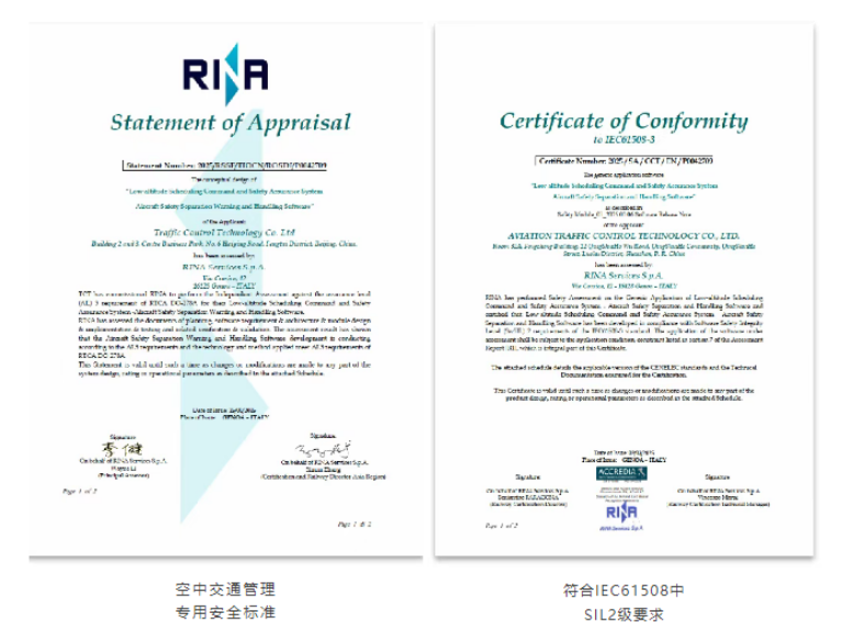 平台通过FTA故障树分析、HAZOP系统性评估等方法,首次引入双标准独立评估概念,获意大利船级社认证,核心功能达到IEC 61508(SIL2)和DO-278A(AL3级)安全要求,标志着我国低空安全管理迈入国际先进行列。这一成果不仅为城市低空飞行提供了可靠保障,更为低空经济规模化发展扫清了技术障碍。