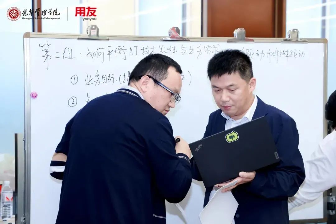 课程不仅注重理论知识的传授,更强调实战落地的能力。在用友产业园(北京)的实地参观与研讨中,学员们亲身体验了数智化技术在企业运营中的实际应用,并通过《企业AI落地工作坊》的形式,分组研讨并实战演练了AI技术在企业中的具体应用路径。这种理论与实践相结合的教学方式,让学员们深刻理解了数智化转型的必要性与紧迫性,并掌握了切实可行的实践指导。