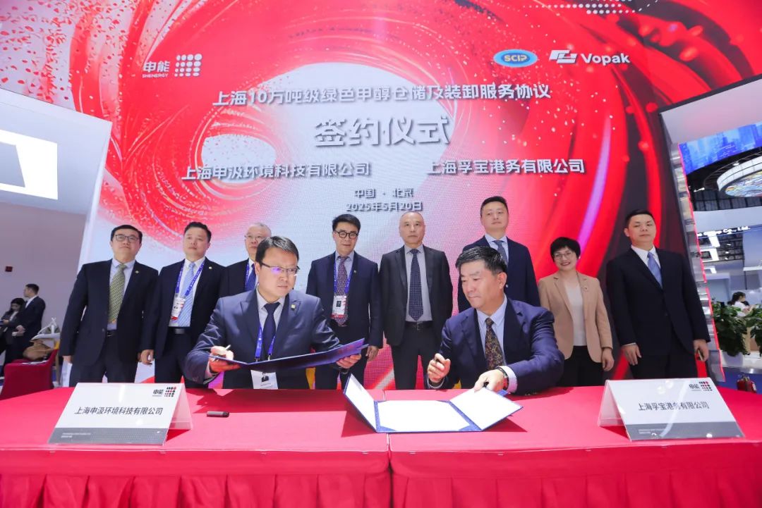 5月20日下午,上海10万吨级绿色甲醇仓储及装卸服务协议签约仪式在申能展台举行。申能集团旗下申汲环境与孚宝港务公司签署服务协议,携手在绿色甲醇仓储和码头装卸服务方面开展长期合作,保障上海港绿色甲醇的稳定供应。