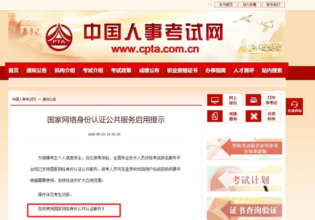 近日,中国人事考试网也发布国家网络身份认证公共服务启用提示,一起来看看如何操作吧。