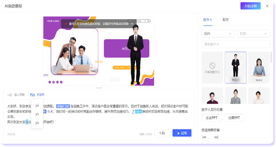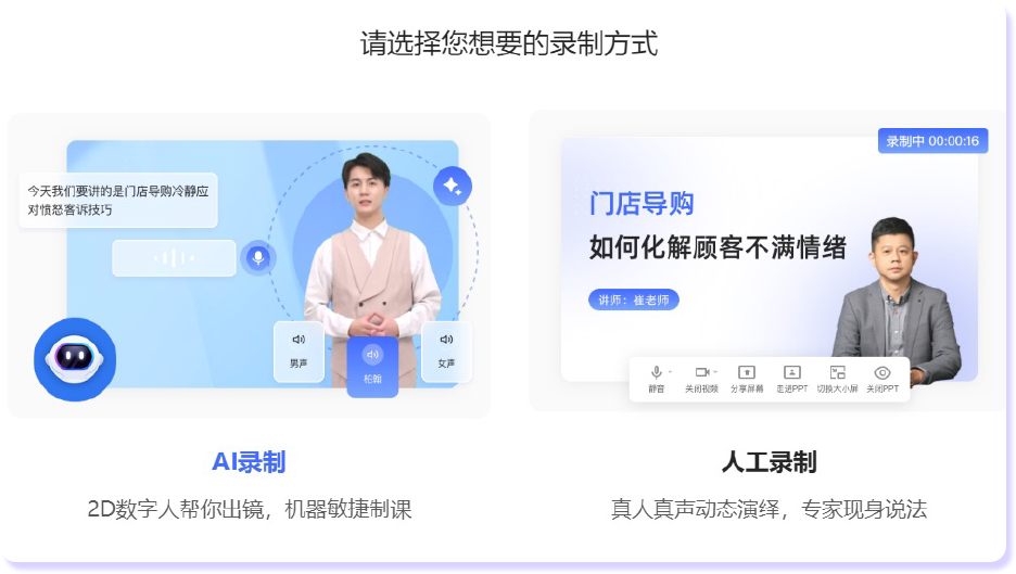 AI数字人讲师授课,自选虚拟形象和配音,不受空间限制,避免真人反复排练录制。