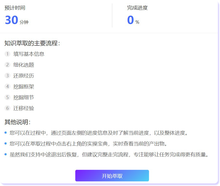 利用AI访谈式萃取和问答模板萃取,即便是零素材,也能准确和深度地挖出业务专家们的经验。