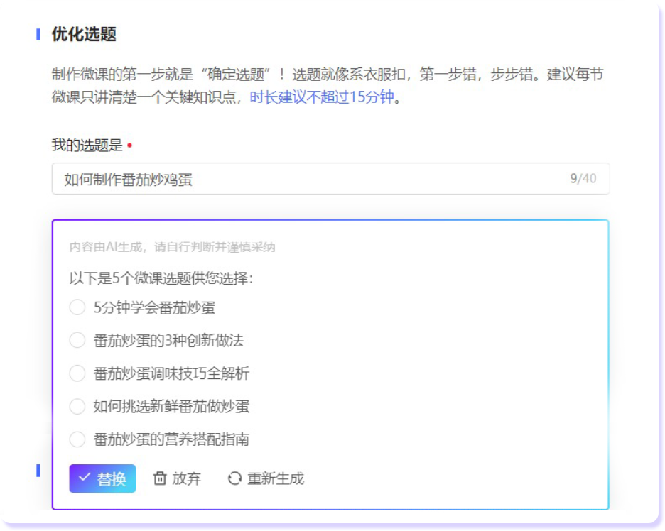 借助AI快速优化选题与教学目标,帮助讲师紧扣主题不跑偏。